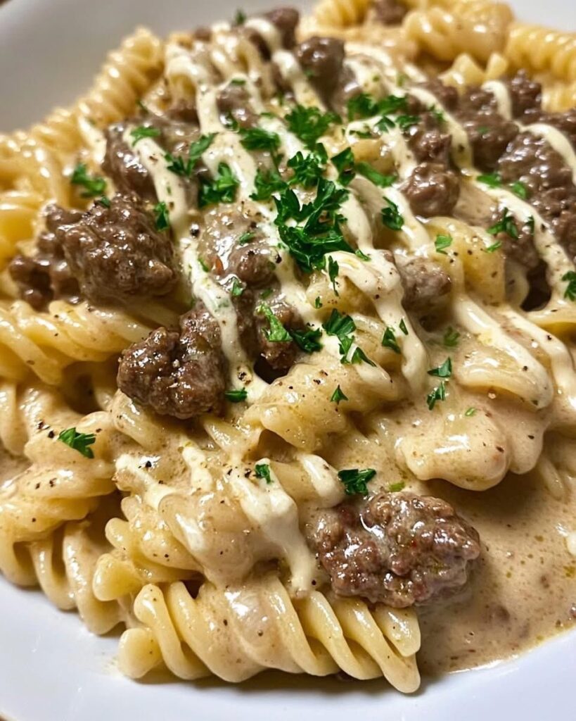 Beef and Rotini in Garlic Parmesan Sauce