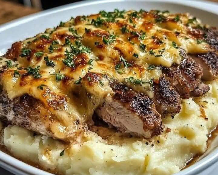 Indulge in a hearty and flavorful meal with this Garlic Parmesan Chicken and Steak Bake, complemented by Cheesy Loaded Mashed Potatoes. This combination offers tender, seasoned meats paired with rich, creamy potatoes—perfect for family dinners or special occasions.