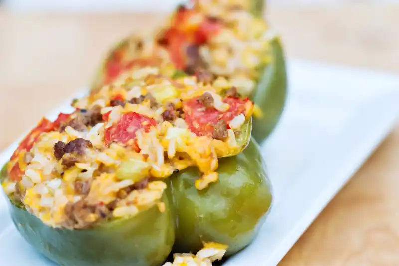 - Stuff each pepper with the meat mixture, pressing gently to ensure they are filled but not overpacked.